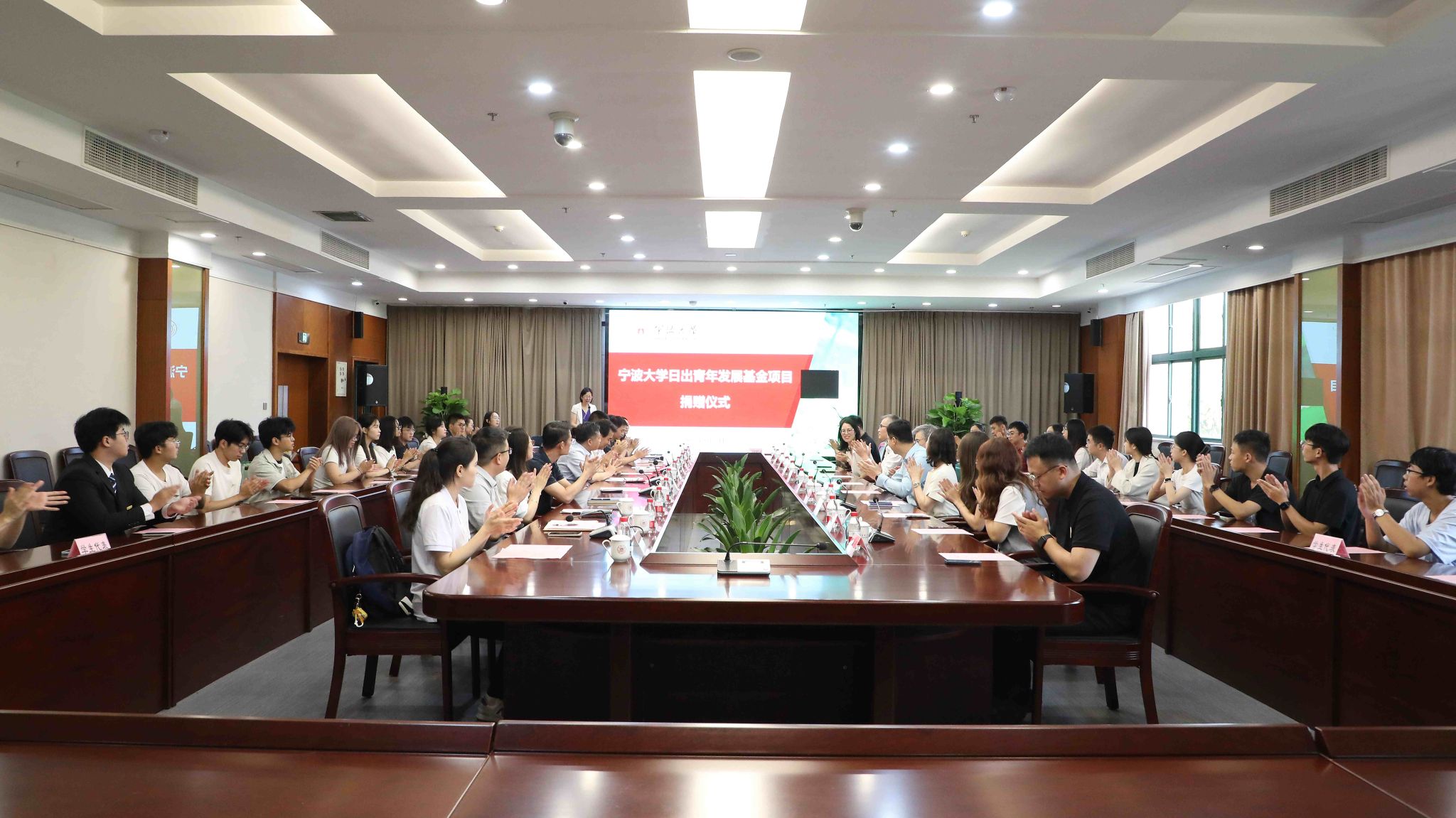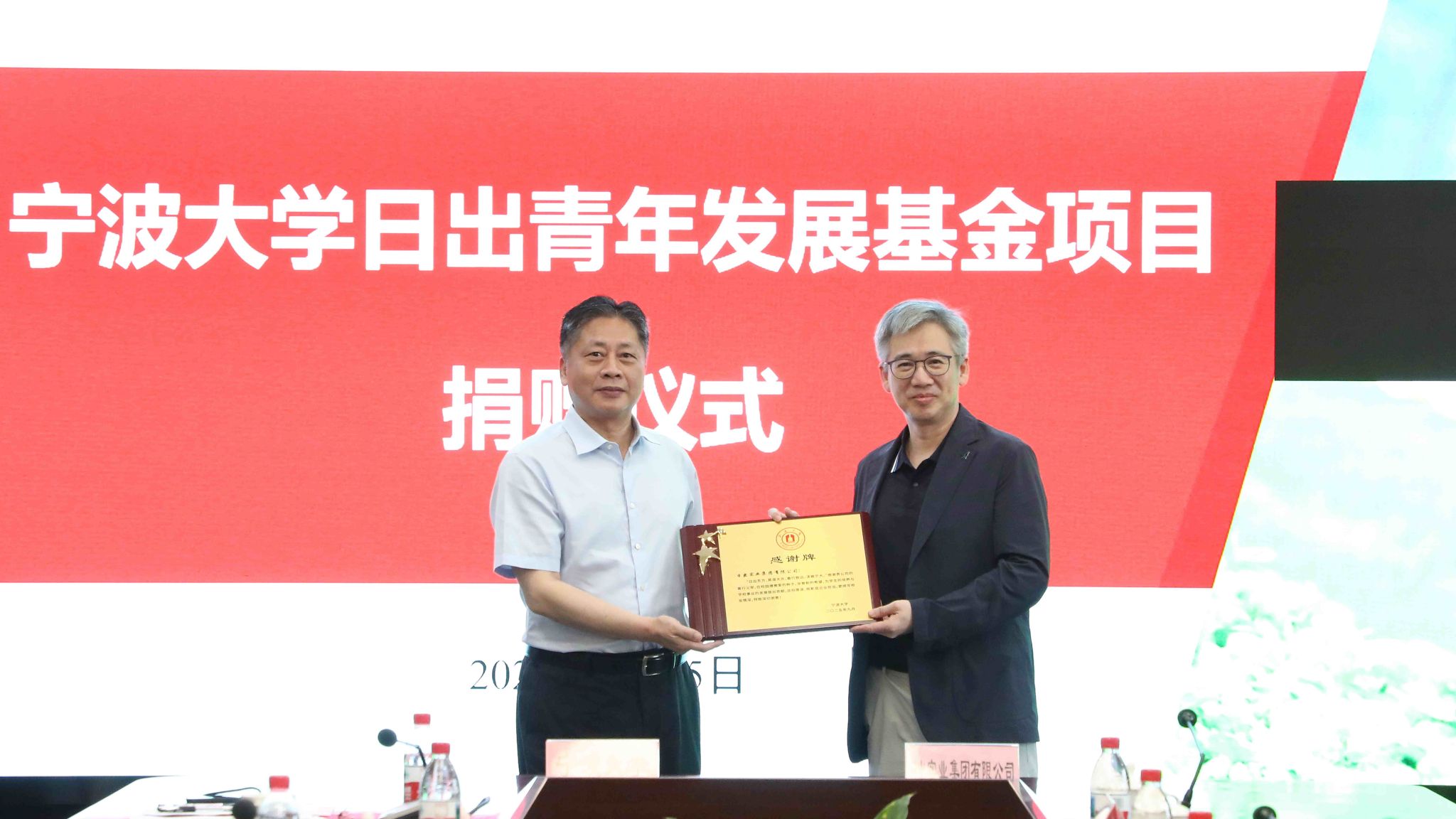 9月15日上午,久久精品一区二区“日出青年发展基金”捐赠仪式在安中大楼碧华厅举行。日出实业集团有限公司(以下简称“日出集团”)向久久精品一区二区教育发展基金会捐资人民币300万元设立专项发展基金,分设“向阳奖学金”“向阳奖教金”和“日出风华”美育专项,支持宁大青年学子的全面发展、优秀学生工作者的激励以及校园文化品牌的打造。